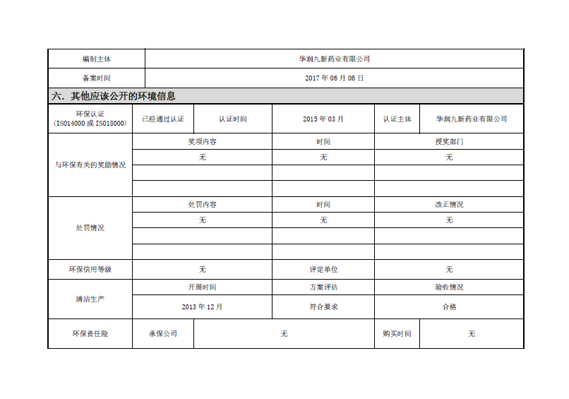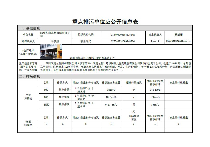 华润九新排污信息果真表